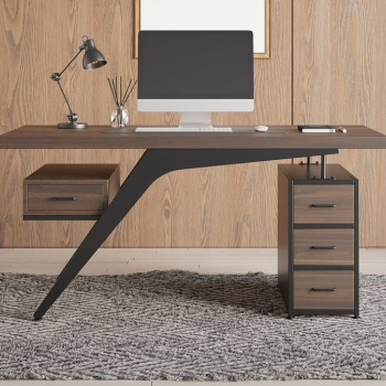 The Elara Executive Suite is a sleek and modern office desk designed to inspire productivity and professionalism. Featuring a spacious white tabletop with a smooth finish, this desk offers ample space for a laptop, desk lamp, and essential office items. The integrated pedestal base combines rich wood tones with white drawers, providing both aesthetic appeal and practical storage with three drawers to organize files, stationery, and personal belongings.