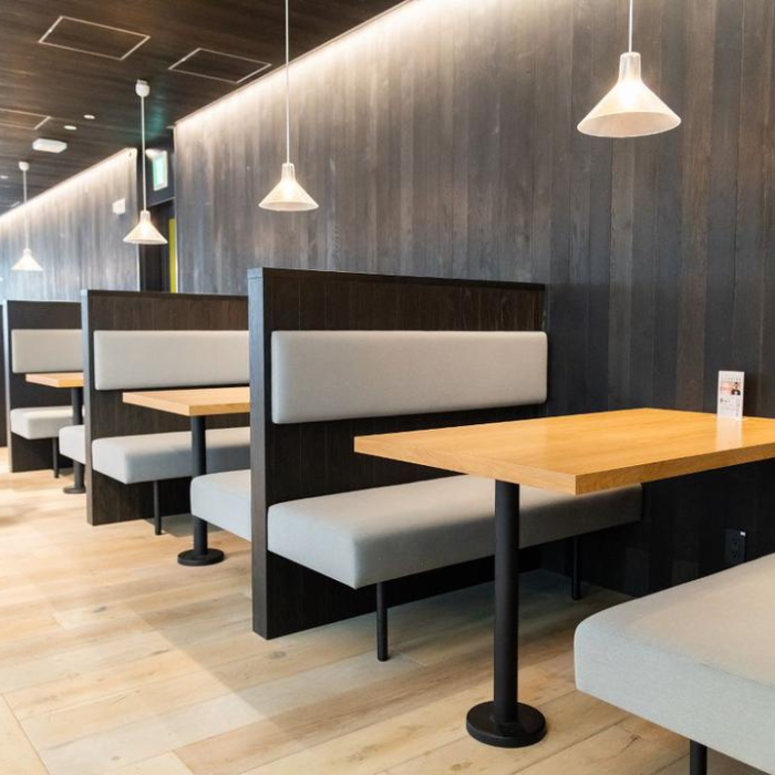 Ember Glow Restaurant Booths bring a touch of warmth and sophistication to any dining space, featuring plush cushions upholstered in rich, ember-hued fabrics that create an inviting glow, paired with sturdy wooden frames accented by subtle metallic trim for a contemporary edge, making them a standout choice for restaurateurs seeking to elevate their interior design. Each booth offers high-backed seating for comfort and privacy, complemented by a smooth, polished wooden table that integrates seamlessly with the cushioned benches, perfect for showcasing in hospitality furniture catalogs or café renovation promotions. The durable construction and customizable color options allow these booths to adapt to various aesthetic themes, from cozy bistros to upscale eateries, while ensuring resilience in busy dining environments. Ideal for fostering an intimate and stylish dining experience, these booths appeal to business owners looking to attract customers with a blend of luxury, comfort, and modern flair that sets their establishment apart in the market.