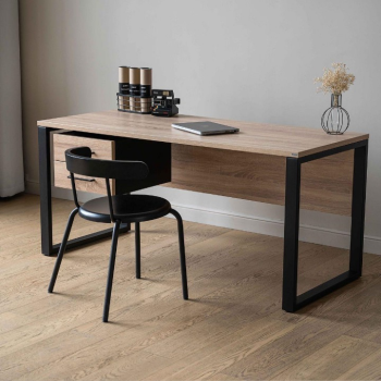The Lumora Desk Ensemble is a sophisticated and versatile workspace solution designed to elevate both productivity and style. This modern desk features a spacious tabletop crafted from high-quality wood with a smooth, light finish, providing ample room for a laptop, desk lamp, and personal items. The integrated side cabinet, finished in a complementary white tone with a wooden accent, includes an open shelf and two drawers, offering convenient storage for books, files, or office supplies.