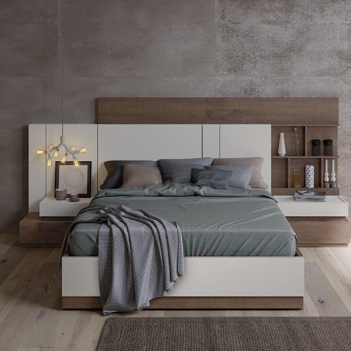 The Modern Elegance Bed Frame with Storage combines sleek design with practical functionality, making it an ideal addition to any contemporary bedroom. Crafted with a combination of rich walnut wood and crisp white finishes, this bed frame offers a sophisticated look that complements a variety of decor styles. The headboard features built-in shelving, providing convenient space to display books, decorative items, or personal mementos, while the integrated side tables offer additional storage for bedside essentials like lamps, clocks, or a cup of coffee. The sturdy platform base, supported by a durable wooden frame, ensures long-lasting comfort and stability, eliminating the need for a box spring. A soft, neutral-toned mattress is complemented by plush pillows and a cozy throw blanket, enhancing the inviting atmosphere. The bed frame also includes a low-profile design with a textured rug underneath, adding warmth to the hardwood flooring. This piece is perfect for those seeking a blend of style and utility, offering ample storage solutions and a modern aesthetic to elevate your sleeping space.