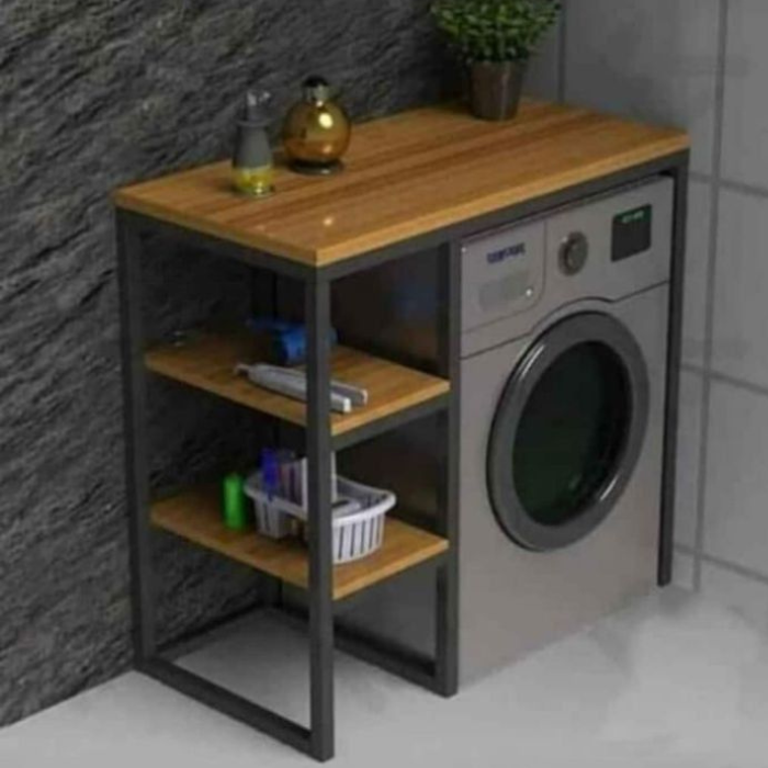 - Space-Saving Design: The unit is engineered to fit over a washing machine, utilizing vertical space with a top shelf and an additional lower shelf for convenient storage.