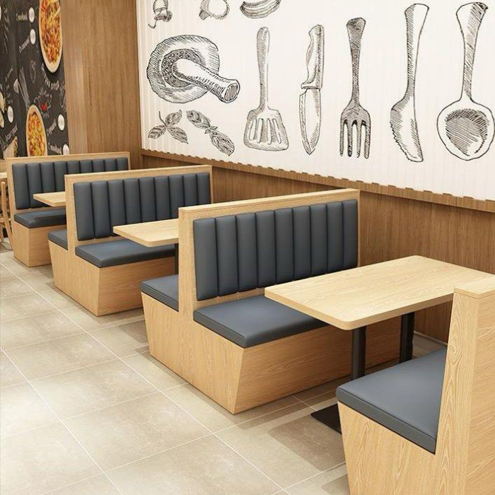 Velvet Haven Restaurant Booths elevate dining ambiance with their plush, modern design, featuring deep velvet upholstery in rich jewel tones like emerald or sapphire, paired with sturdy wooden frames that exude sophistication, making them an enticing option for restaurateurs or café owners looking to upgrade their seating. Each booth includes high-backed cushions for comfort and privacy, complemented by sleek metal accents along the edges and a cushioned bench seat that wraps around a polished wooden table, ideal for showcasing in hospitality furniture advertisements or restaurant renovation listings. The versatile layout allows for customization in size and color, blending seamlessly with various interior styles from rustic to contemporary, while the durable construction ensures longevity in high-traffic dining environments. Perfect for creating an intimate dining experience, these booths offer a cozy yet stylish seating solution, appealing to business owners aiming to attract patrons with a blend of luxury and functionality that stands out in the market.