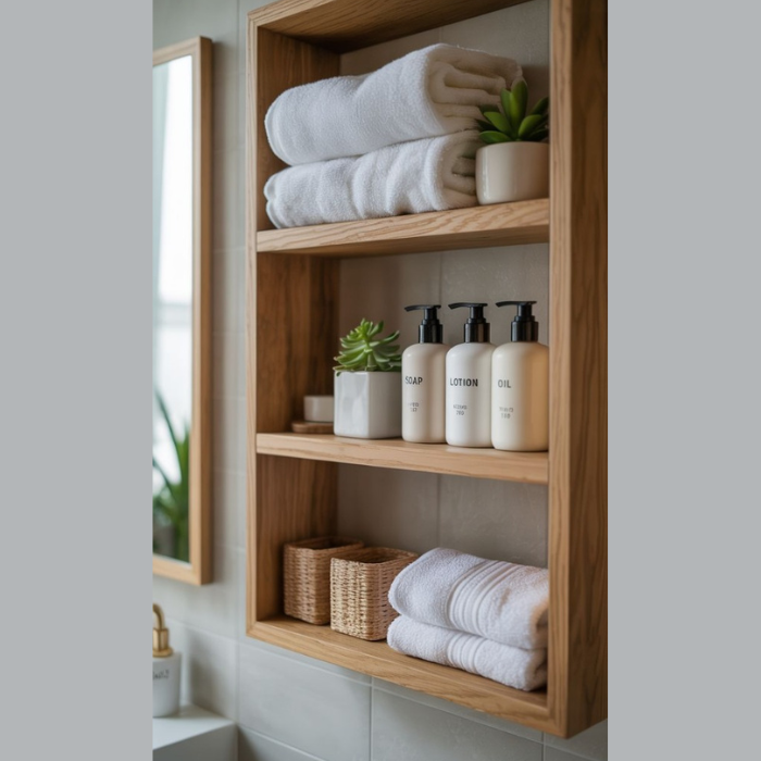 Wooden Bathroom Shelf with Modern Storage Solution