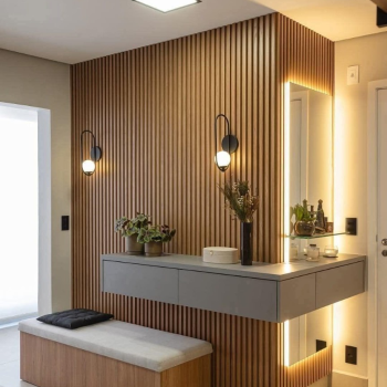 Bring serene sophistication to your entryway with the Zen Horizon Dressing Table, featuring minimalist design and warm ambiance.