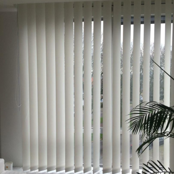 Transform your space with the SleekFlow Vertical Blinds, featuring elegant white slats that offer a minimalist and modern aesthetic.