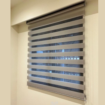 Elevate your space with the Luxe zebra Window Blinds, featuring a sophisticated design that combines alternating sheer and opaque fabric strips for adjustable light control and privacy.